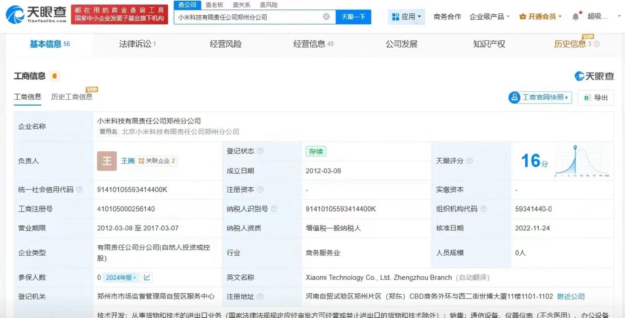 目前,王腾名下还关联1家小米系公司,其仍然是小米科技有限责任公司郑州分公司负责人,该公司成立于2012年3月。